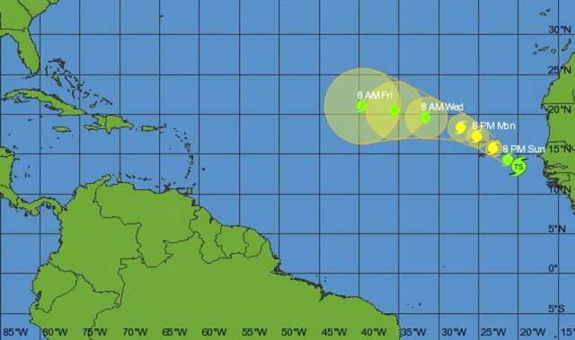 Su posición a las 6:00 am (hora local) se estimó a unos 625 kilómetros al sudeste de las islas de Cabo Verde.