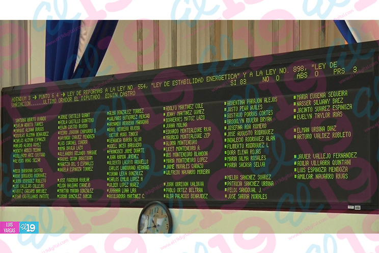 La Asamblea Nacional (AN) aprobó este jueves las reformas a las leyes 554, Ley de Estabilidad Energética, y 898, Ley de Variación a la Tarifa Energética, con 83 votos a favor, cero en contra y cero abstenciones.