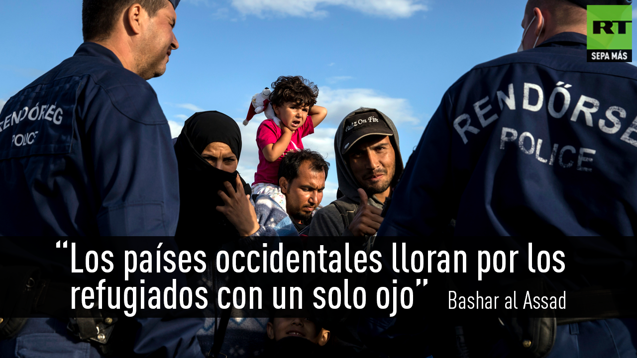 "Originalmente Occidente dijo que los acontecimientos sirios eran 'protestas pacíficas', después 'acciones de la oposición moderada' y ahora admite la existencia del terrorismo bajo el nombre del EI o el Frente Al Nusra, pero atribuye la culpa al Gobierno sirio, al 'régimen' sirio y al presidente sirio. Por lo tanto, mientras continúe esta línea de propaganda no tendrán más remedio que aceptar a más refugiados", pronosticó Al Assad. "La cuestión no es que Europa deba o no acoger a los refugiados, sino la necesidad de abordar las causas fundamentales del problema. Si a los europeos les preocupa el destino de los refugiados, que dejen de apoyar a los terroristas".