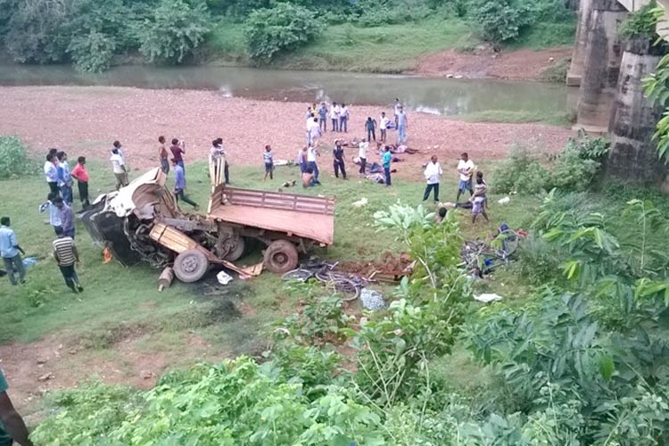 El transporte se volcó y cayó de un puente cerca de la aldea de Suarapalli, agregó el funcionario.