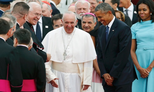 El papa Francisco llegó este martes a Washington (capital de Estados Unidos) donde fue recibido por el presidente de ese país, Barack Obama y la primera dama, Michelle Obama, en la base aérea de Andrews.