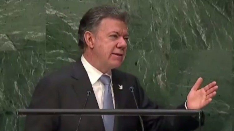 Unos días antes el líder colombiano participó en la Cumbre de Desarrollo Sostenible de la ONU, donde fijó como objetivos de la humanidad la erradicación de la pobreza y de la injusticia, así como la lucha contra el cambio climático. "Colombia dice 'presente' a este llamado por un porvenir mejor", subrayó.