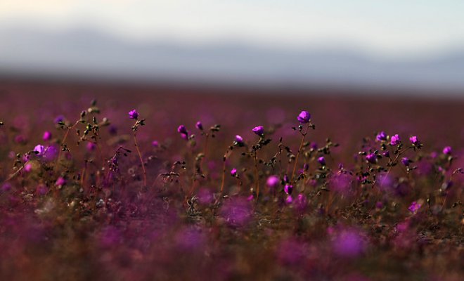 Cada cinco o siete años el árido desierto de Chile se transforma en una alfombra de flores de color malva pero las abundantes precipitaciones que han mojado la hostil tierra norteña del país estos últimos meses, han propiciado el “florecimiento más espectacular de los últimos 18 años”.