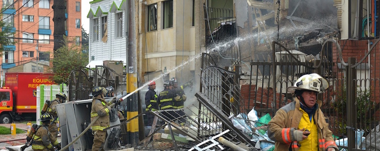 La explosión, que dejó en llamas el edificio donde se originó, sucedió a primera hora de la tarde en el barrio Galerías, cerca del estadio El Campín, de la céntrica localidad de Chapinero.