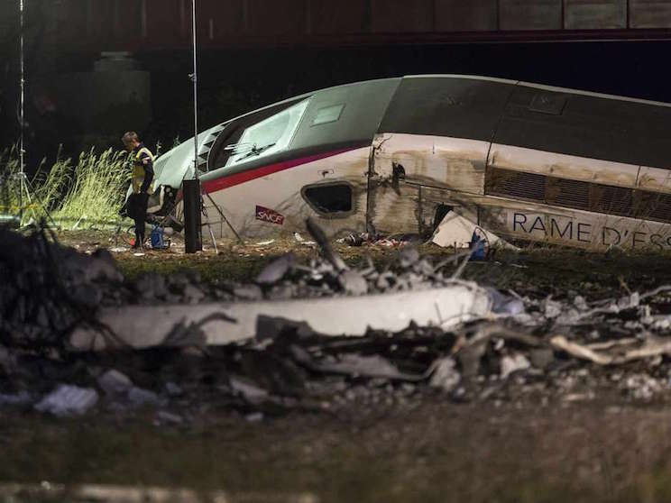El tren, dijo una fuente de la prefectura de Alsacia al diario "L'Alsace", llevaba a bordo técnicos y descarriló "a causa de una velocidad excesiva".