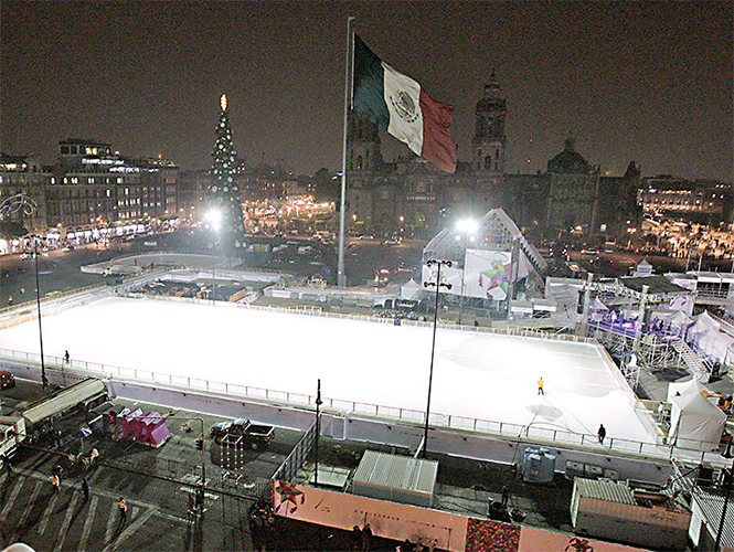 La pista está ubicada en la Plaza de la Constitución, frente al Palacio Nacional y la imponente catedral.