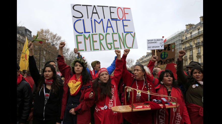 La principal de ellas fue convocada junto al Arco del Triunfo, donde los manifestantes, vestidos mayoritariamente de rojo, trazaron una línea de ese mismo color con la que pretendieron simbolizar los límites que no se deben superar y la frontera entre las víctimas del calentamiento global y sus causantes.