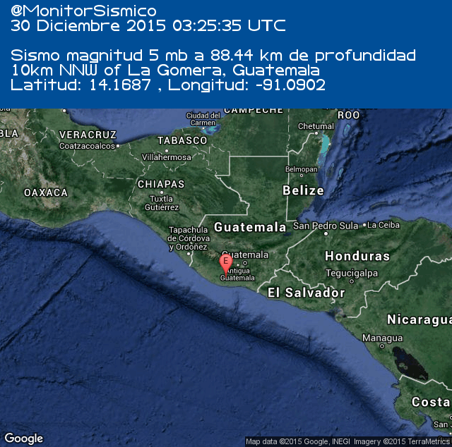 Un sismo de 5 grados de magnitud, de acuerdo al Servicio Geológico de Estados Unidos (USGS, por sus siglas en inglés), ocurrió la noche de este martes en Guatemala.