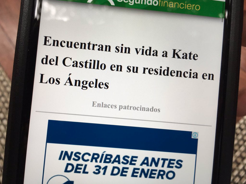 La “noticia” señaló que Kate había sido encontrada fallecida en su departamento de Los Angeles, EEUU.