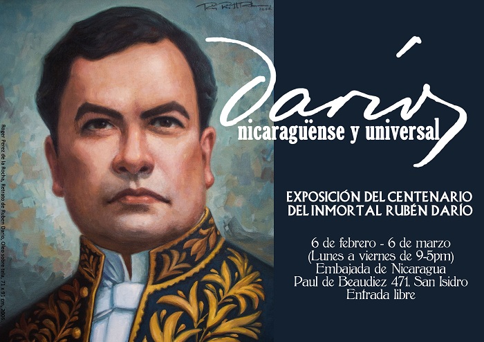 El 6 de febrero, día central de la conmemoración, la sede diplomática nicaragüense inaugurará a las 7:30 p.m. la muestra: “Darío: nicaragüense y universal. Exposición del Centenario del inmortal Rubén Darío”. Esta alberga fotografías y manuscritos del poeta y dos retratos al óleo de los reconocidos pintores Bruno Portuguez y Róger Pérez de la Rocha.