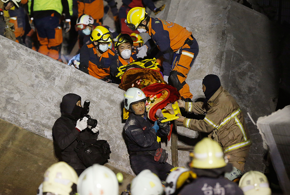 Los equipos de rescate sacaron a 348 personas de entre los escombros en la ciudad de Tainan, la zona más afectada. Más de 2 mil bomberos y soldados equipados con escaleras, grúa y otros equipos revisaron los restos de un edificio de viviendas de 17 plantas que se plegó como un acordeón.