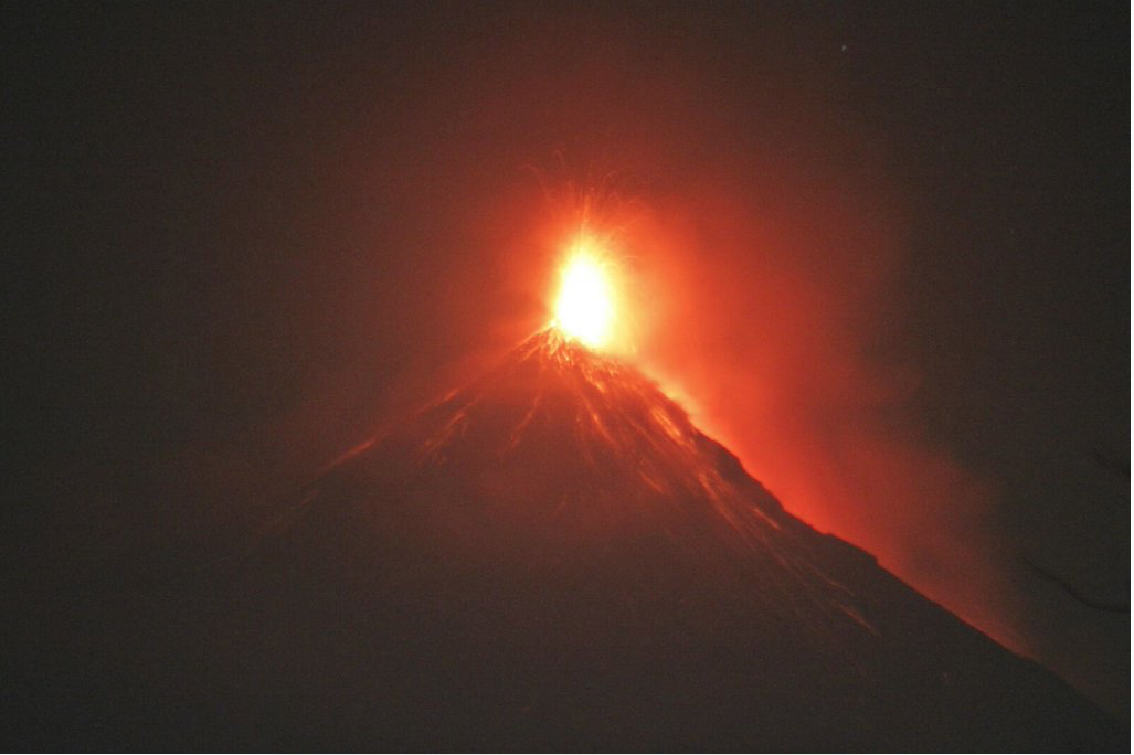 Las explosiones presentan incandescencia a 150 metros sobre el nivel del cráter y alimentan un flujo de lava en dirección al sur, con una distancia de 800 a 2.000 metros, señalan las autoridades.
