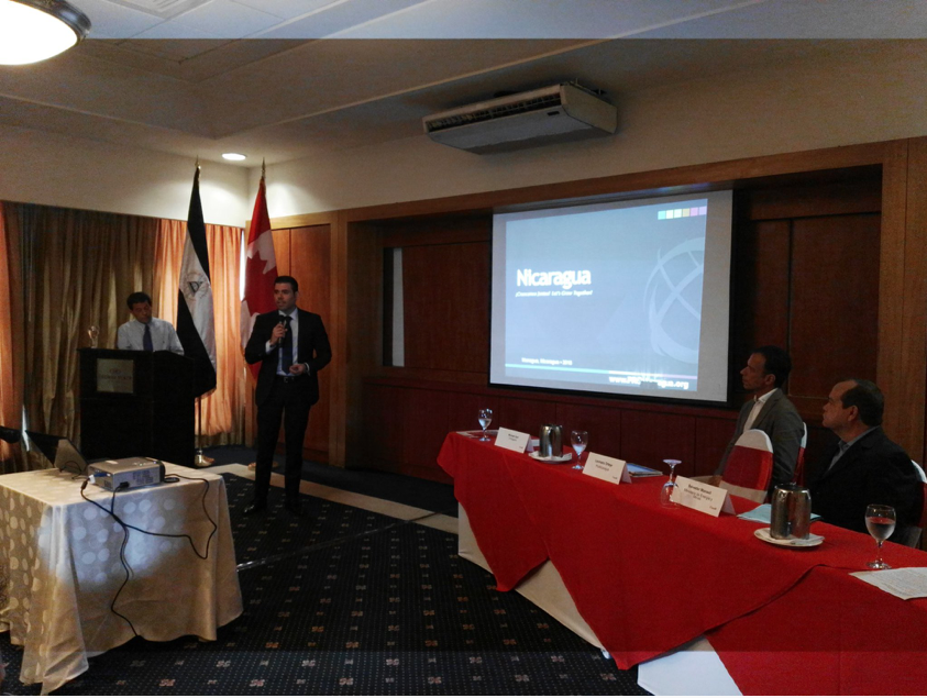 Laureano Ortega Murillo, promotor de Inversiones ProNicaragua, explicó a los canadienses que en niveles de seguridad el país está bendecido por estar entre los primeros en Centroamérica y Latinoamérica, algo que para ellos significa un gran valor agregado para que decidan instalarse en Nicaragua.