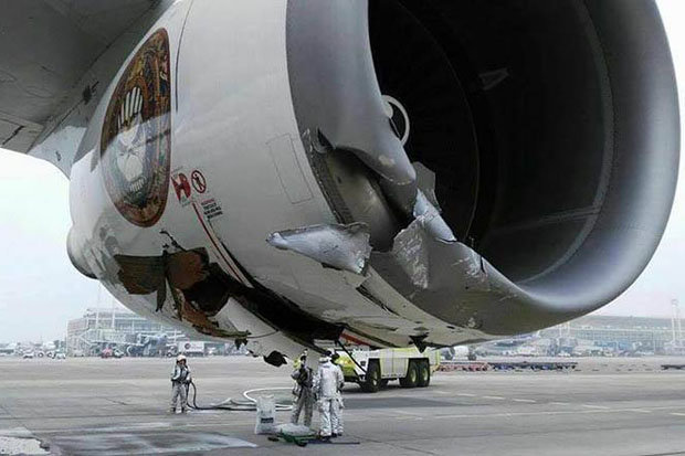 La banda señala que el avión estaba atado a un camión de remolque y de reabastecimiento de combustible en el momento del suceso.