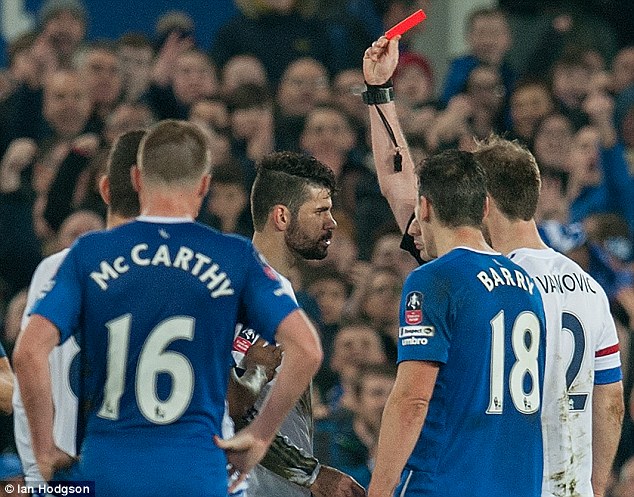 El brasileño Diego Costa perdió la cabeza en el juego de la FA Cup que Cheslea perdió ante Everton.