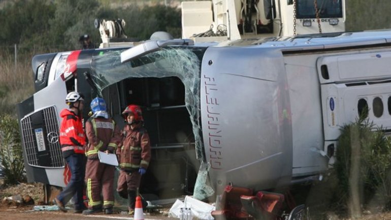 El accidente se produjo cerca de Freginals, a 150 kilómetros al sur de Barcelona, cuando el vehículo volvía de las Fallas, una fiesta tradicional que se celebra en Valencia.