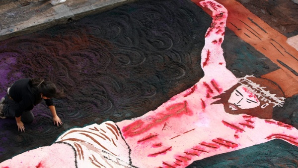 Pero en este país resalta la preparación de un evento sobre los demás. Miles de guatemaltecos se reúnen este jueves para crear la alfombra de serrín más grande del mundo como una muestra del amor a Dios que tienen.