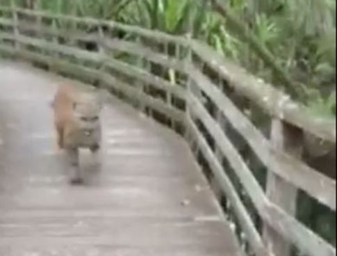 La mujer, de nombre Tina Dorschel, caminaba por el santuario Corkscrew Swamp en Naples, mientras grababa todo con su celular, cuando se le apareció de frente una temible pantera.