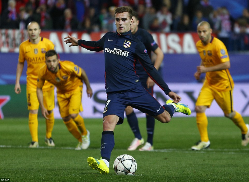 Ante un Barcelona desconocido, en el que la delantera formada por Lionel Messi, Luis Suárez y Neymar pasó desapercibida, el francés Antoine Griezmann se convirtió en el héroe rojiblanco al anotar los dos goles de su equipo (36’ y 88’, de penal).