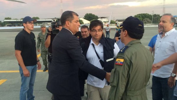 Según reportó la televisión local, el jefe de Estado aterrizó esta tarde en la base aérea de Manta, provincia de Manabí, la más devastada por el sismo que, según el Instituto Geofísico, ya tiene más de 135 réplicas en la zona de Pedernales, lugar del epicentro.