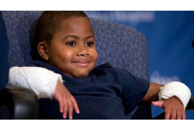 Este nene de ocho años es el primero en recibir un trasplante de manos infantil. La operación se realizó hace algunas semanas en el hospital pediátrico de Filadelfia. El equipo médico de 40 personas utilizó placas de acero y tornillos para unir los huesos viejos y nuevos. Los cirujanos reconectaron meticulosamente las arterias, venas, músculos, tendones y nervios de Zion.