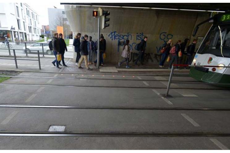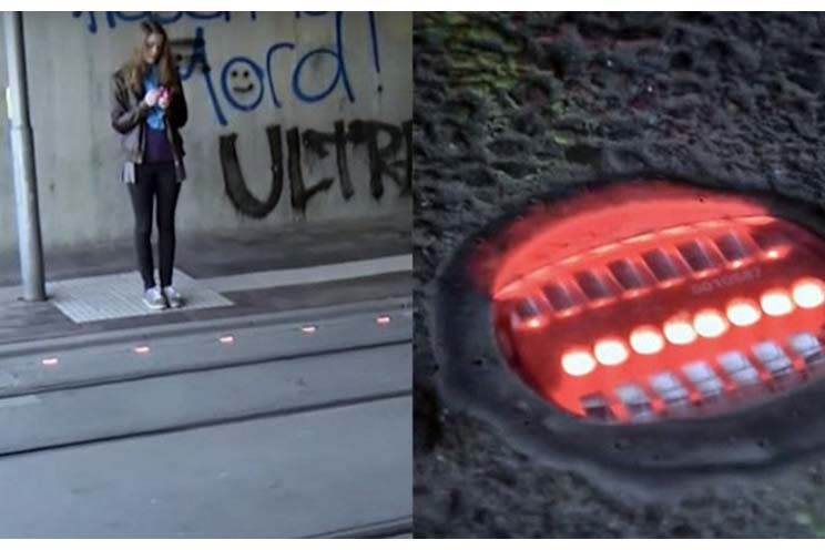 Las franjas de LED ubicadas en el margen de los raíles permiten atraer la mirada de los transeúntes que no prestan atención al tráfico y evitar de esta manera accidentes graves o hasta mortales.