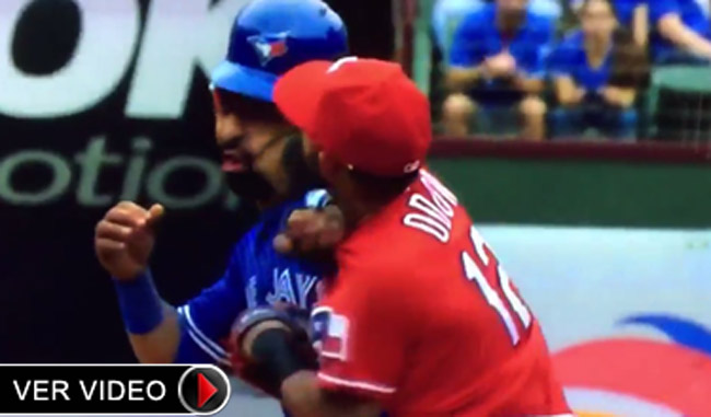 El estelar jugador de los Azulejos de Toronto, José Bautista, fue golpeado por un excelente derechazo del infielder de los Rangers de Texas, Rougned Odor, en un incidente que reanudó y prolongó una vieja rencilla entre ambos equipos.