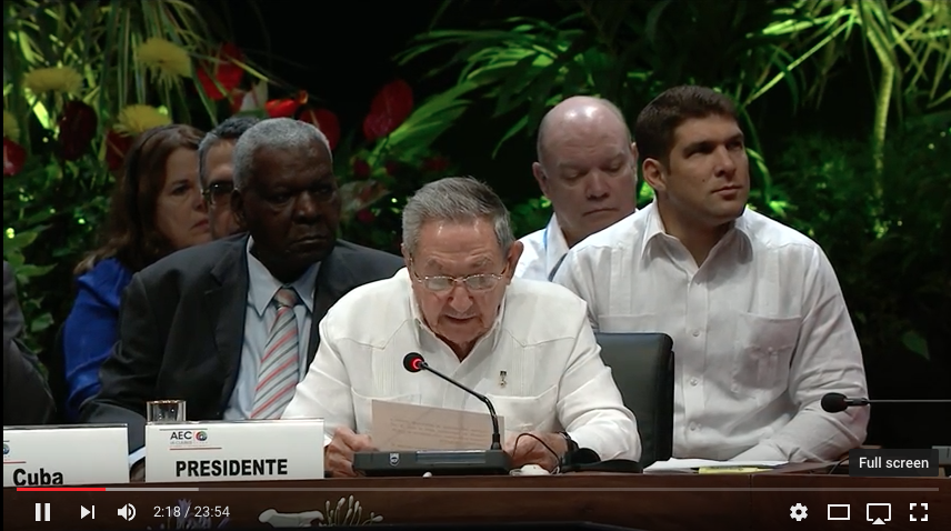Las palabras del mandatario cubano tuvieron lugar en la sesión inaugural de la VII Cumbre de jefes de Estado y de Gobierno de la Asociación de Estados del Caribe (AEC), que sesiona en el Palacio de la Revolución de esta capital.