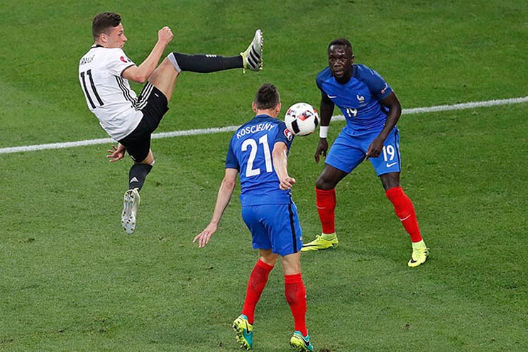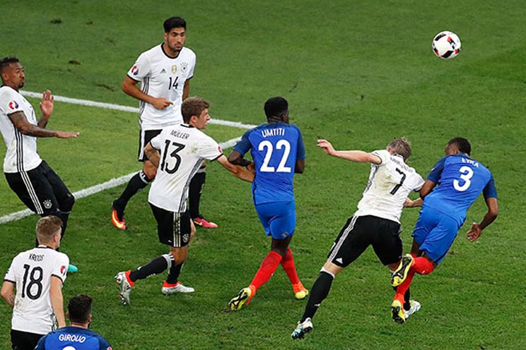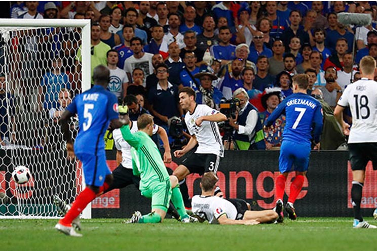 En el arranque del partido, el primer susto lo dio Francia con un disparo de Antoine Griezmann (minuto 7) en el área a pase de Dimitri Payet que Manuel Neuer salvó por bajo.