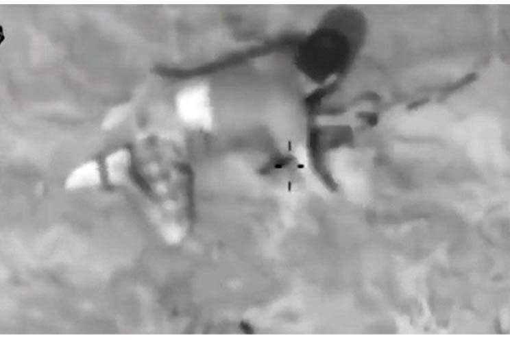 Un vídeo en el que un combatiente del Estado Islámico trata de ocultarse de un helicóptero cubriéndose la cabeza con las ramas de un pequeño arbusto ha sido publicado por la cadena World News.