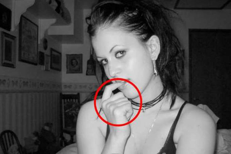 Probablemente ya estés mirando todo menos la imagen central. Vuelve a ella y fíjate en su mano. Pese a que su gesto sugerente puede distraer nuestra atención, no será difícil atisbar que tiene un dedo más de la cuenta.