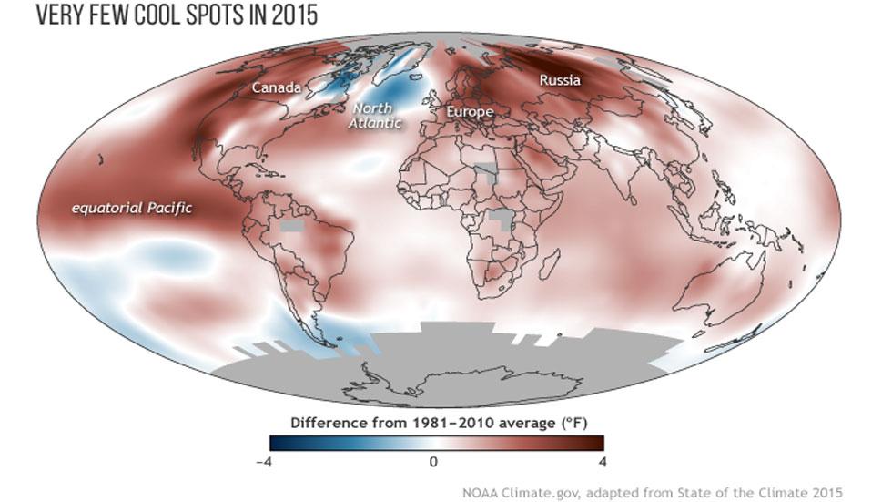 El año 2015 superó al 2014 como el más caluroso de la historia desde que existen registros y batió récords en la emisión de gases de efecto invernadero, según el informe anual de la Agencia Nacional de Océanos y Atmósfera de Estados Unidos (NOAA, en inglés).