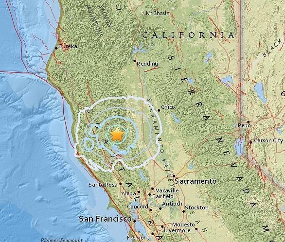 El epicentro se ubicó 19 kilómetros al noreste de la localidad de Upper Lake y 137 kilómetros al noroeste de Sacramento, la capital estatal.