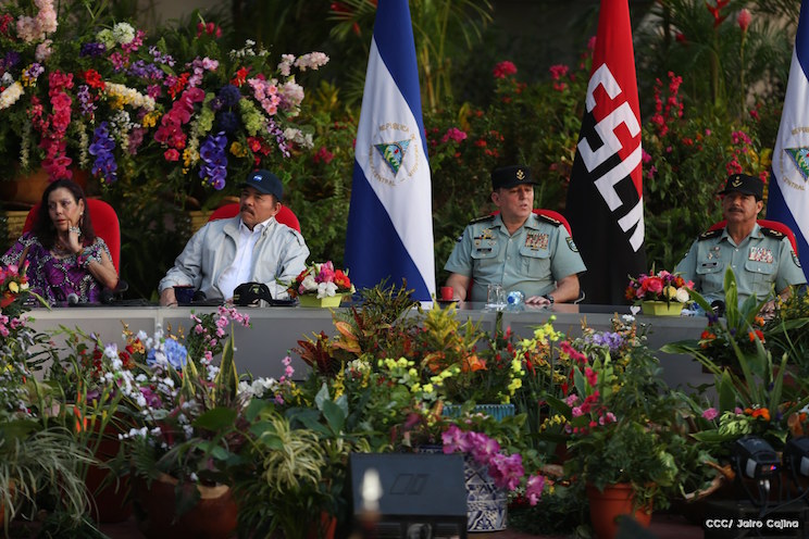 Presidente de la República y Jefe Supremo del Ejército de Nicaragua, Comandante Daniel Ortega Saavedra; Coordinadora del Consejo de Comunicación y Ciudadanía, Compañera Rosario Murillo Zambrana; Comandante en Jefe del Ejército de Nicaragua, General de Ejército Julio César Avilés Castillo; Jefe del Estado Mayor General del Ejército de Nicaragua, Mayor General Oscar Mojica Obregón; Inspector General del Ejército de Nicaragua, Mayor General Adolfo José Zepeda Martínez; Ministra de Defensa de la República de Nicaragua, Doctora Martha Elena Ruiz Sevilla; Directora General de la Policía Nacional, Primera Comisionada Aminta Elena Granera Sacasa.
