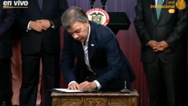 Posteriormente, firmó el documento que convoca a la realización del plebiscito, no sin antes agradecer a las delegaciones de paz que "dieron lo mejor de si para lograr un acuerdo histórico".