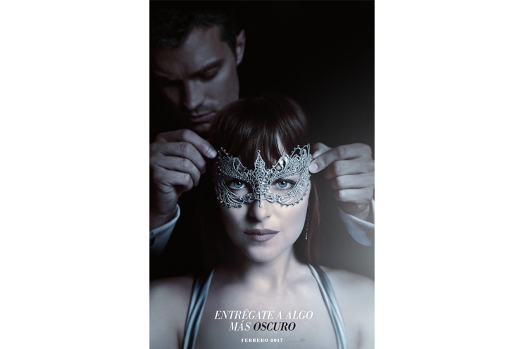 En él aparece Anastasia Steele (Dakota Johnson) en primer plano y Christian Grey (Jamie Dornan) detrás colocándole una máscara. Los fans de las novelas de E.L. James que adaptan las películas sabrán que esto es una referencia al baile de máscaras organizado por los padres de Christian, Carrick y Grace, que tiene lugar en el segundo libro. "Entrégate a algo más oscuro", reza el lema del cartel.