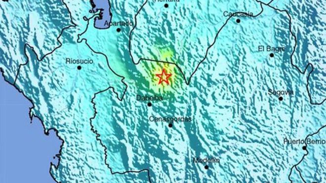 El Servicio Geológico Colombiano informó en un comunicado que el movimiento telúrico de este miércoles tuvo como epicentro la localidad de Dabeiba, también en Antioquia y una profundidad superficial (menor a 30 kilómetros).