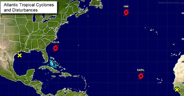 En esta temporada, iniciada el 1 de junio, se han formado once tormentas tropicales, de las cuales cuatro se han convertido en huracanes (Alex, Earl, Gaston y Hermine), que han ocasionado 66 muertes, la mayoría registradas en México por el paso de Earl.