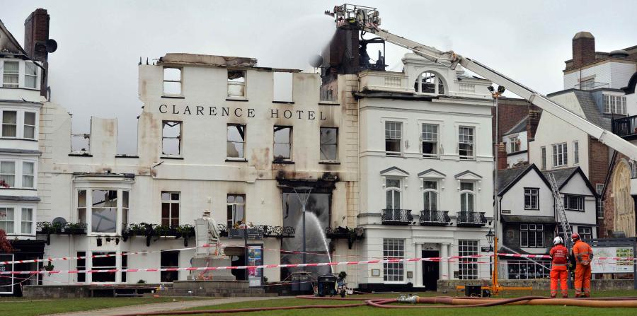 El Royal Clarence Hotel de la localidad de Exeter, considerado como el "más antiguo de Inglaterra", ha comenzado hoy a derrumbarse como consecuencia del incendio declarado en la zona desde el viernes, informó la cadena BBC.