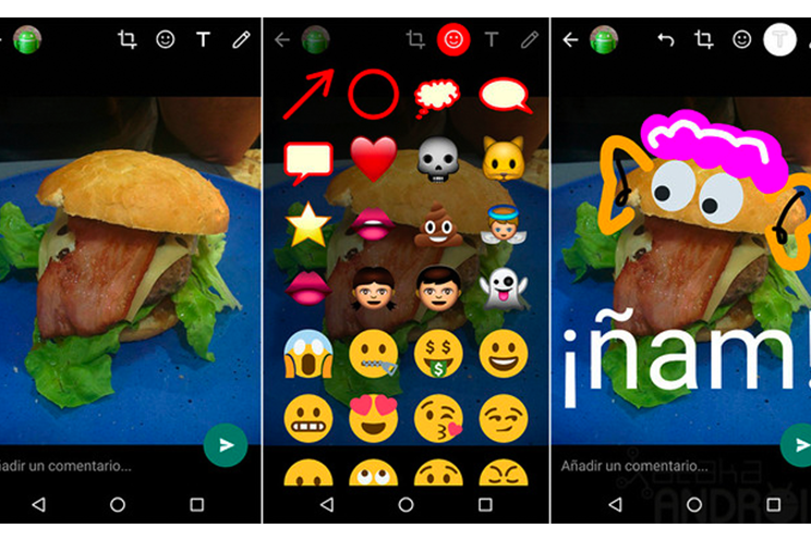Además del estado que queramos mostrar públicamente en nuestro perfil, ahora WhatsApp también incluye un nuevo icono (ubicado a la izquierda de "Chats") que nos permite compartir directamente una fotografía/vídeo con uno o varios contactos de la agenda. Estos archivos también se pueden personalizar al estilo Snapchat, con stickers y dibujos sobre la imagen o el vídeo.