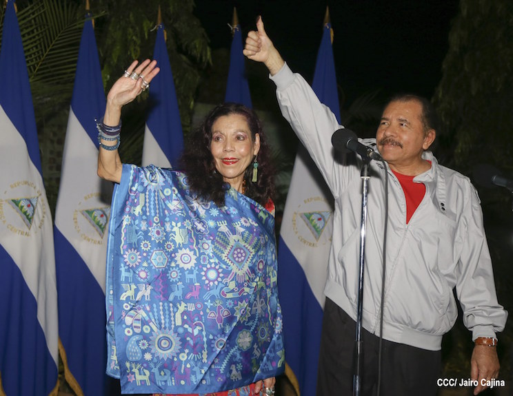 Felicitaciones a Ortega y Murillo han llegado del presidente cubano Rubén Castro, del presidente venezolano Maduro, del Bolivia evo morales, y de los gobiernos de México, Guatemala, El Salvador, a los cuales se ha sumado diego Armando Maradona, que desde su página Facebook, felicita a Daniel Ortega, de parte de una sandinista más.