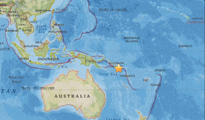 Tras el sismo, fue declarada una alerta de tsunami para las Islas Salomón, Vanuatu, Papúa Nueva Guinea, Nauru, Nueva Caledonia, Tuvalu y Micronesia y Hawaii, la cual fue cancelada posteriormente.