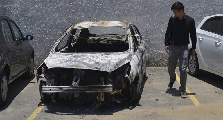 En el interior del auto, fue hallado el cuerpo "completamente carbonizado" del embajador griego, según relató el delegado.