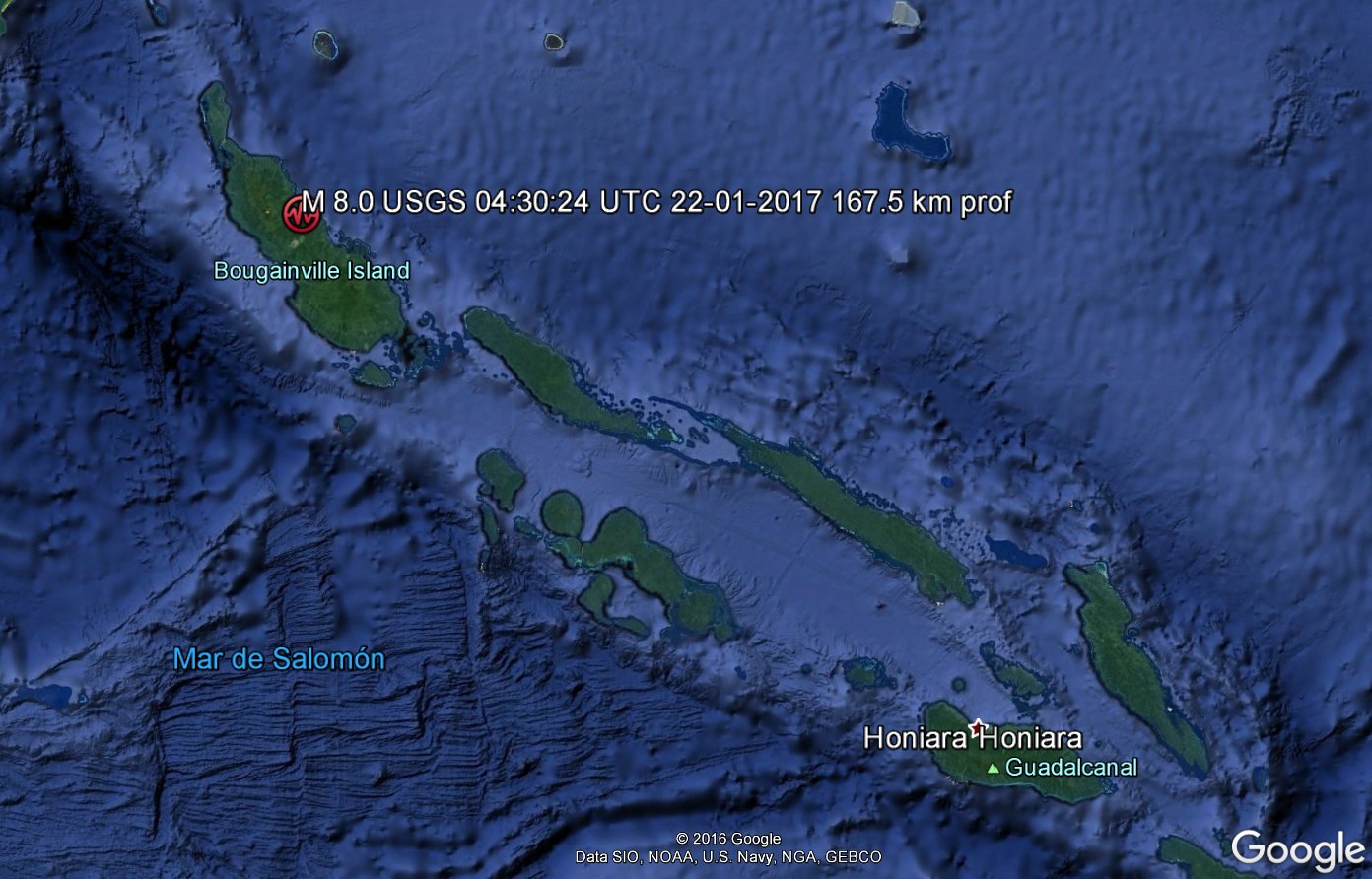 Un fuerte terremoto de magnitud 8,0 ha sacudido las Islas Salomón, informa informa el Servicio Geológico de EE.UU. (USGS, por las siglas en inglés).