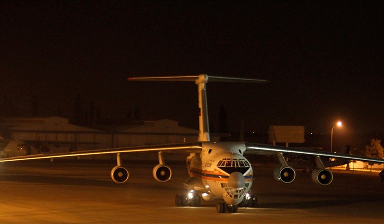 Avión #Ilyushin II-76 ya está en y es recibido por el Canciller @HeraldoMunoz y el embajador ruso. pic.twitter.com/2QGrxnO5DF