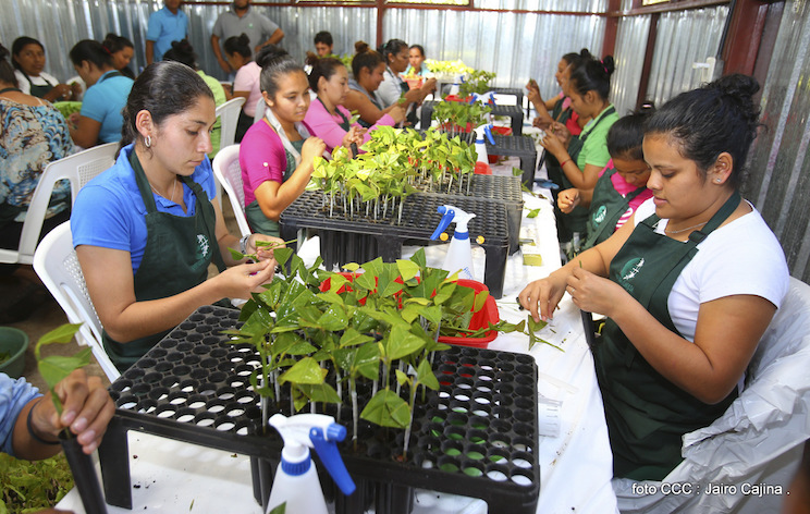 La joven Nafaelda Hernández, es parte de las ochenta mujeres que trabajan en el área de injertación, un proceso delicado ya que de ahí depende el éxito de la nueva variedad.
