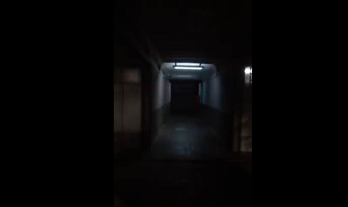 En el video se ve cómo una puerta roja se azota a lo lejos y, mientras los guardias se acercan, las luces se apagan y la puerta se queda quieta.