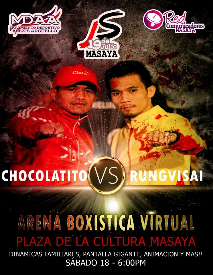 La fanaticada y todos los que apoyan "Chocolatito", conocido por sus puños de acero, servidor de Cristo e inmenso corazón, podrá disfrutar de la entretenida pelea en la Plaza de la Cultura de Masaya a partir de las 6:00 de la tarde.