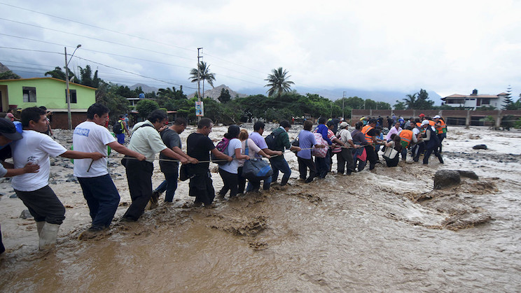 Las lluvias están causadas por un atípico fenómeno climatológico de El Niño, que ha calentado inusitadamente la superficie marina del litoral peruano, lo que a su vez provoca intensas y atípicas lluvias en su costa desértica que devienen en aniegos, desbordes de ríos y deslizamiento de tierras, conocidos en Perú con el término quechua "huaicos".