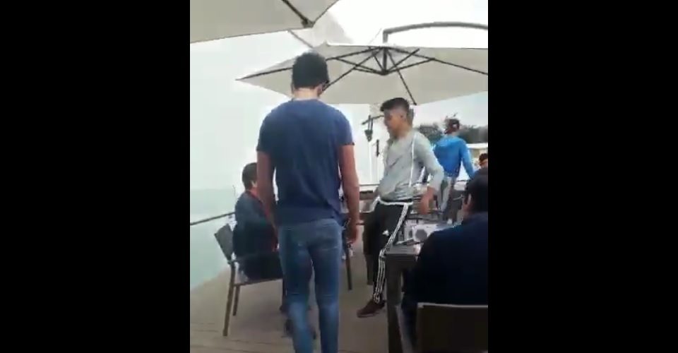 En las imàgenes vemos como al menos dos hombres provocan a otros sujetos que estàn sentados para pelearse, “¿Por qué?”, le preguntan a uno de los agresores, a lo que le responden“¿Te vas a rifar?”.